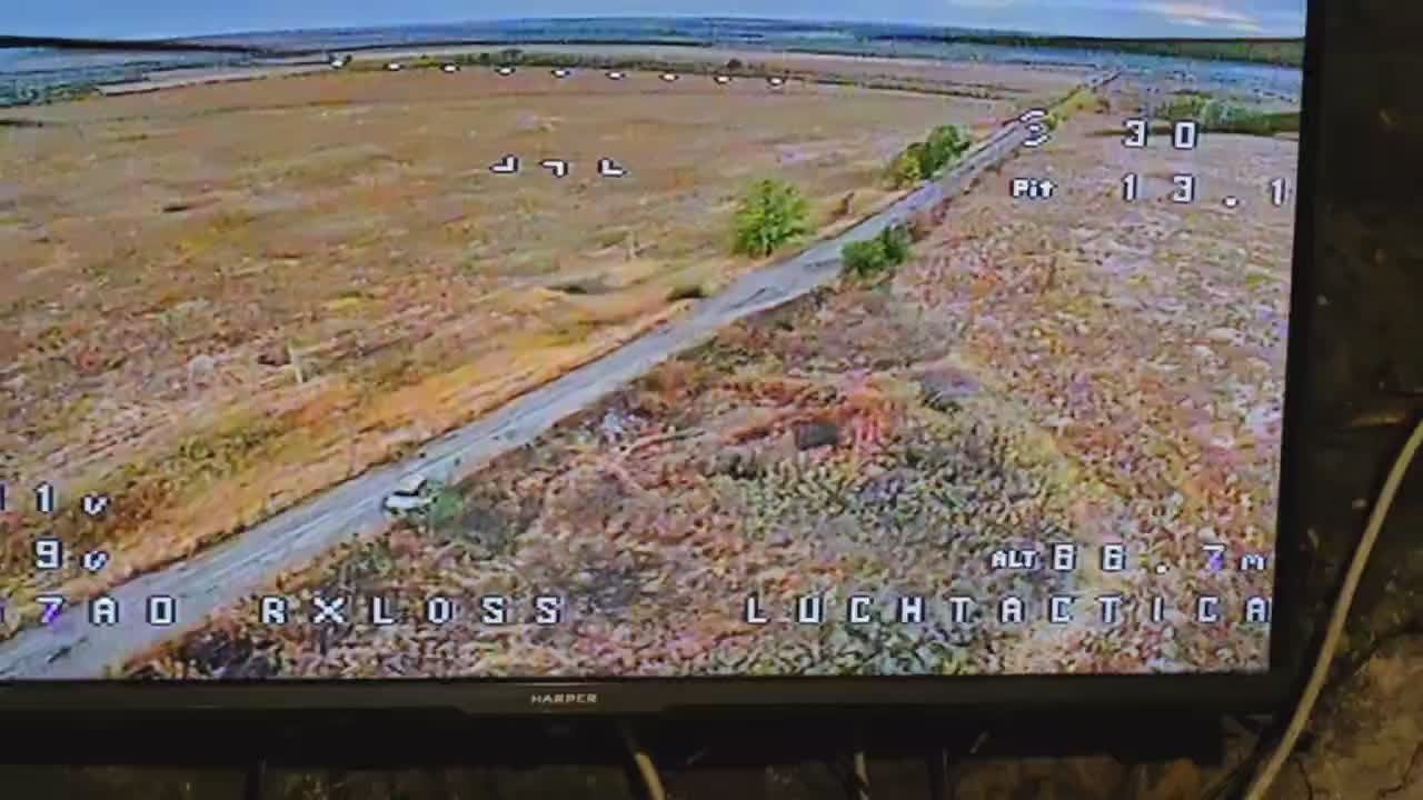 Операторы Штурмового отряд Пиратов Моряка 7-го отдельного мотострелкового полка охотятся на встрявшую на дороге пехоту ВСУ. Местность для того, чтобы прятаться от FPV там конечно не самая удобная.
