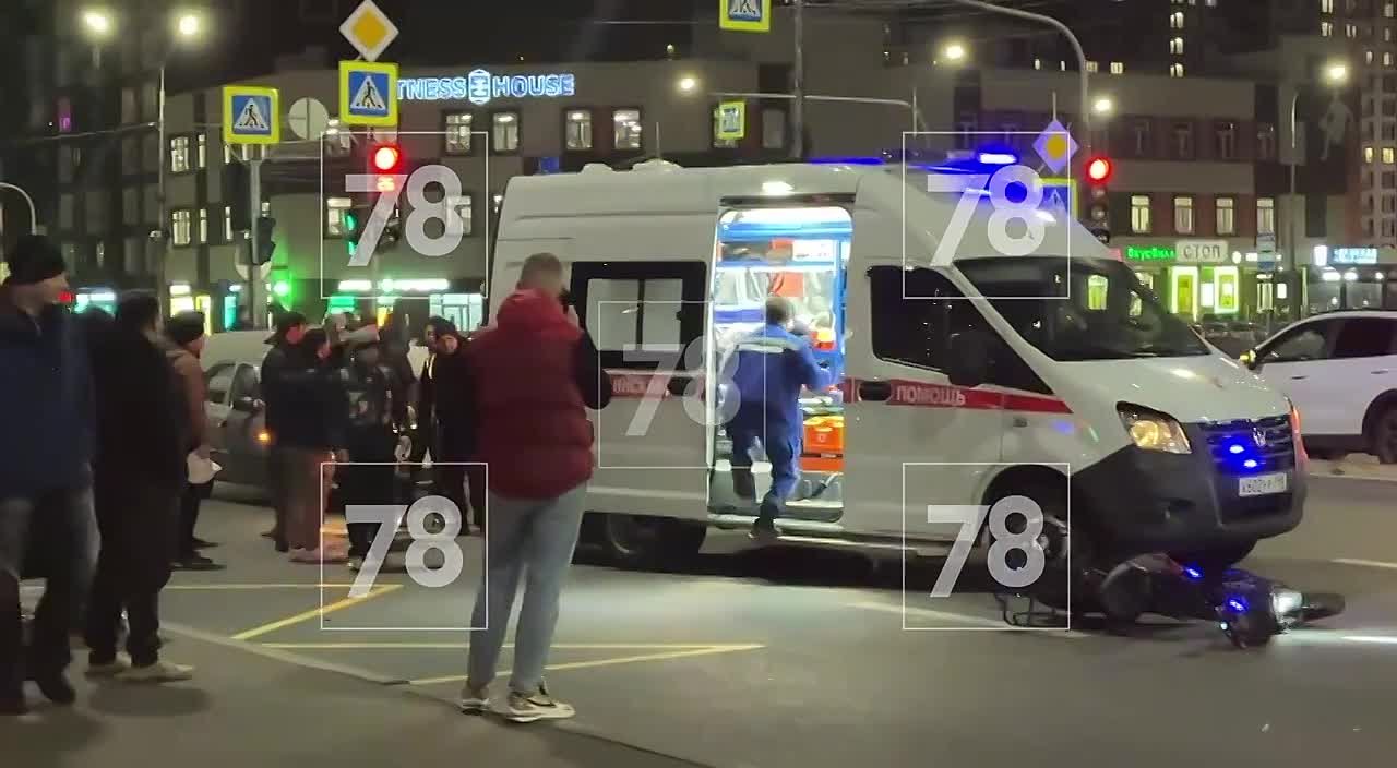Водитель сбил доставщика еды в Мурино. Авария произошла на перекрестке улицы Шувалова и Петровского бульвара накануне вечером.