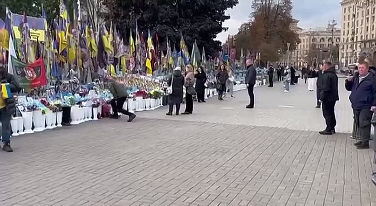 На пустой, перекрытой ради Зеленского площади расставили массовку. Внимание: люди не двигаются и даже не поворачиваются — двигается только охрана.