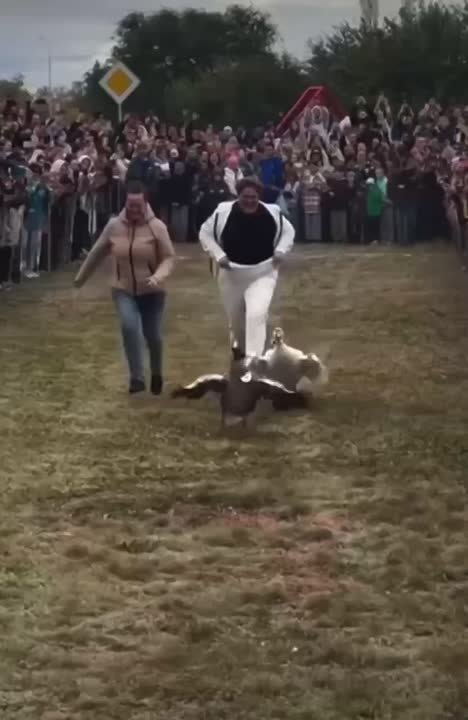 Некоторым птицам повязали ленточки и бантики. Это не было случайным: владелец самого красивого гуся после забега получил в подарок самовар.