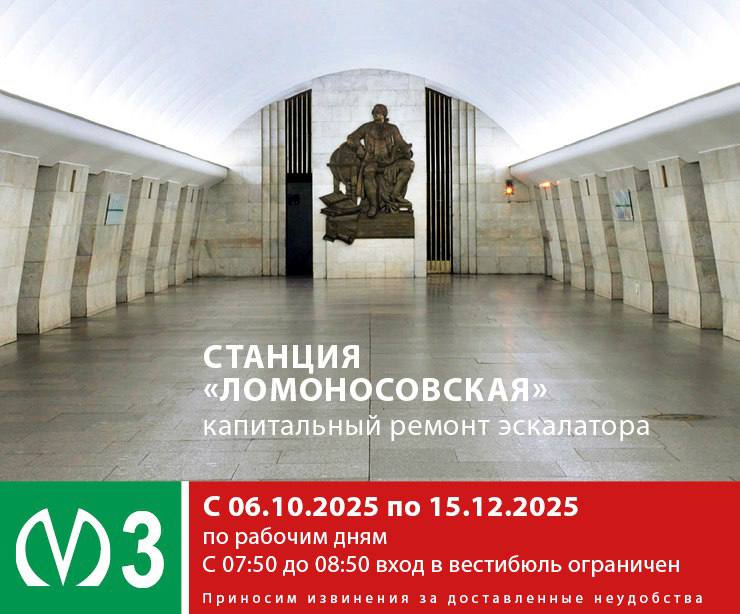 Капремонт эскалатора на «Ломоносовской» ограничит вход в вестибюль.
