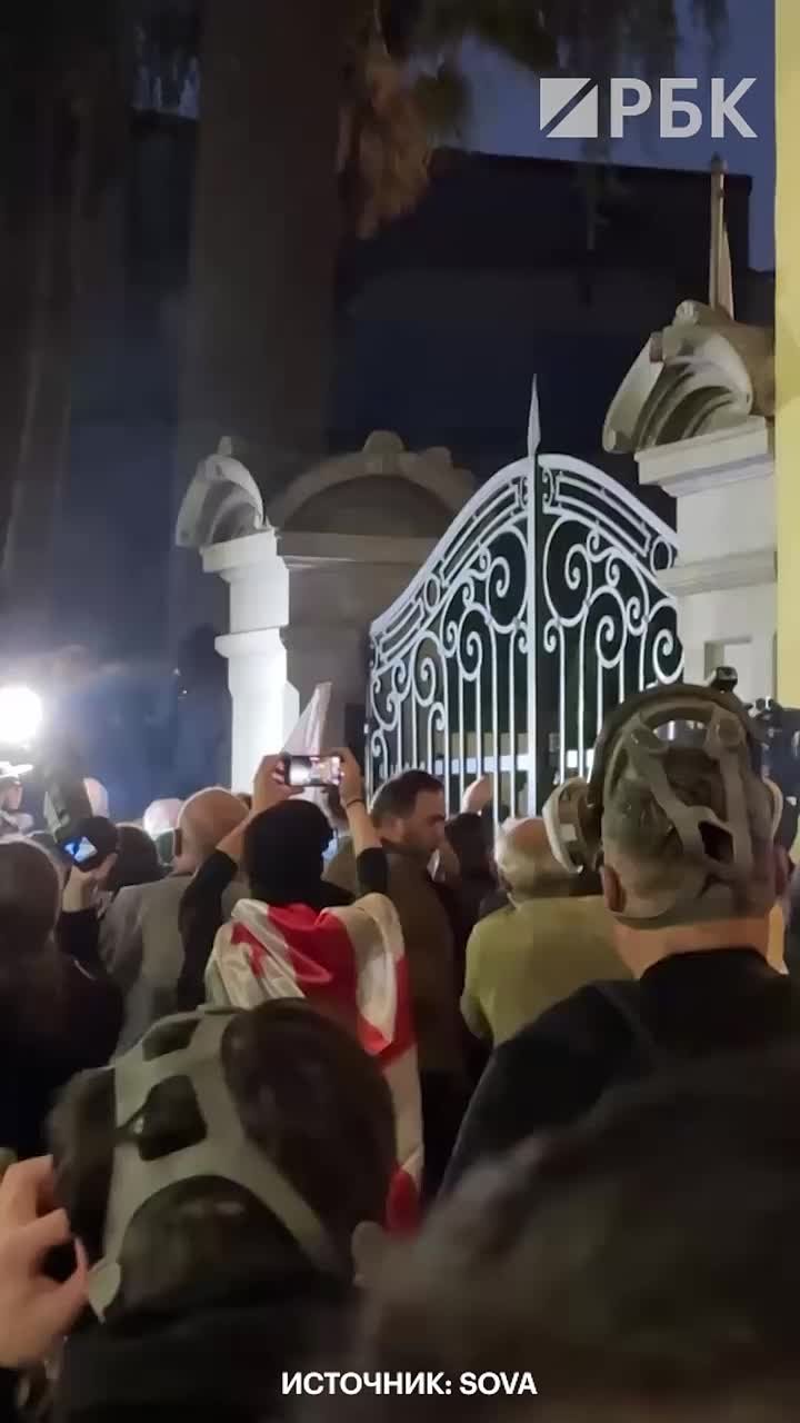 Митингующие в Тбилиси ворвались во двор резиденции президента Грузии, пробив железные заграждения, передает местный телеканал «Пирвели».