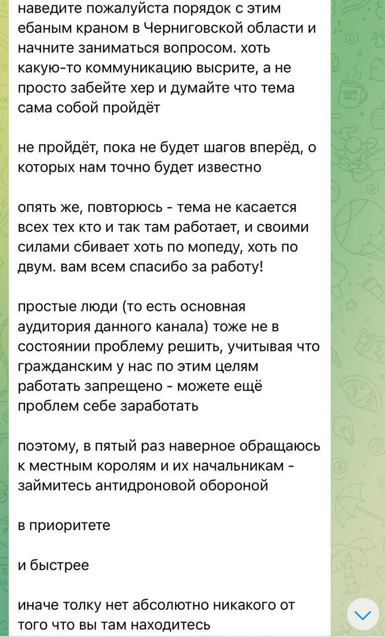 Блогер Николаевский Ванек навел Герани на г. Шостка Сумской области. Он в издевательской форме сообщил нашей стороне, что в отличии от Чернигова, город прикрыт лучшими украинскими FPV перехватчиками.