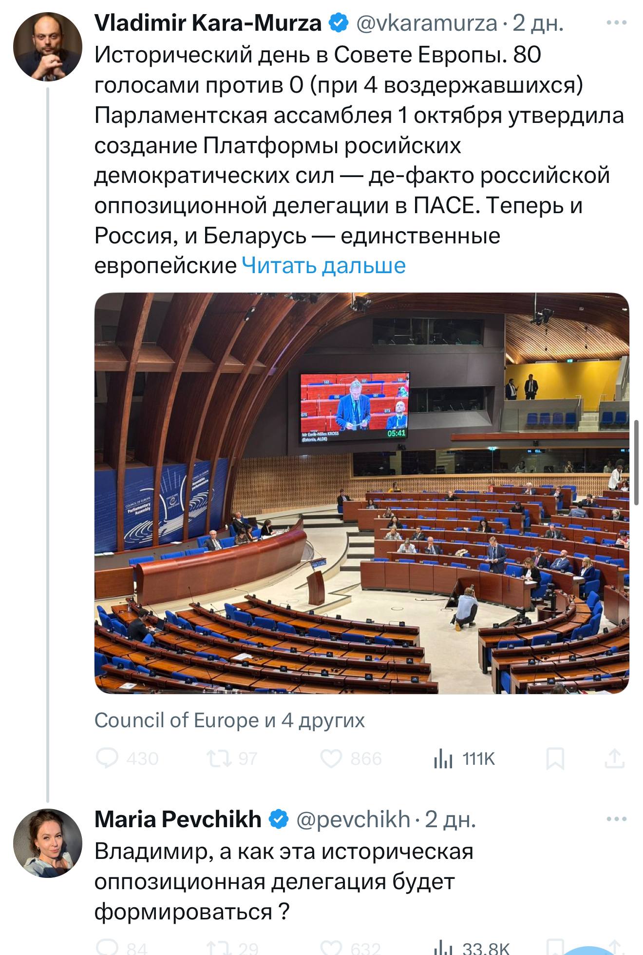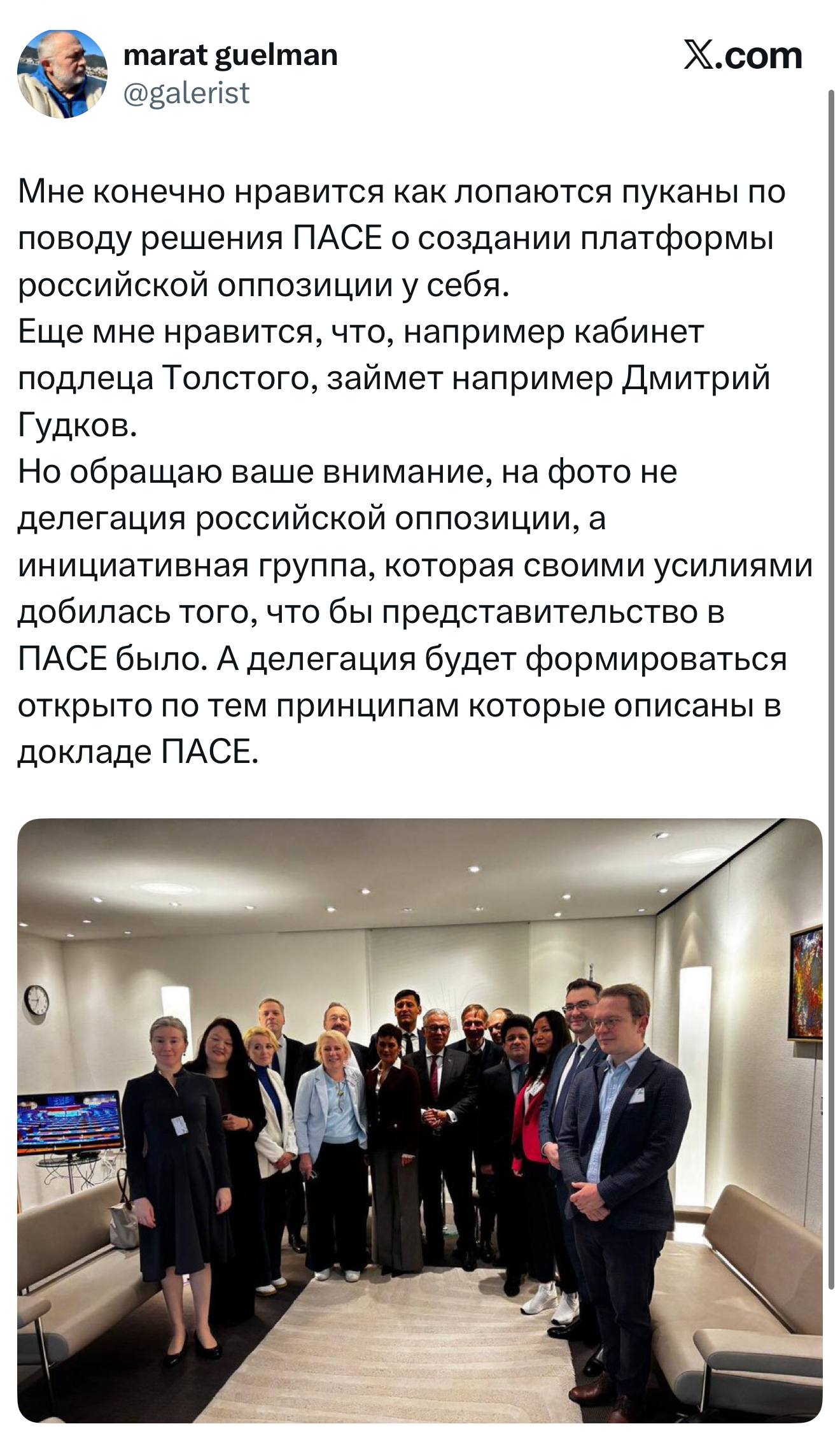 Россия вышла из ПАСЕ в 2022-м, и в 2026-м году все эти Шариковы будут там заседать в качестве наблюдателей. 90% фамилий всяких настоящих Президентов России в изгнании и их министров вы никогда не слышали, но они точно представляют народ России.