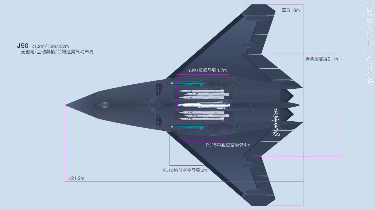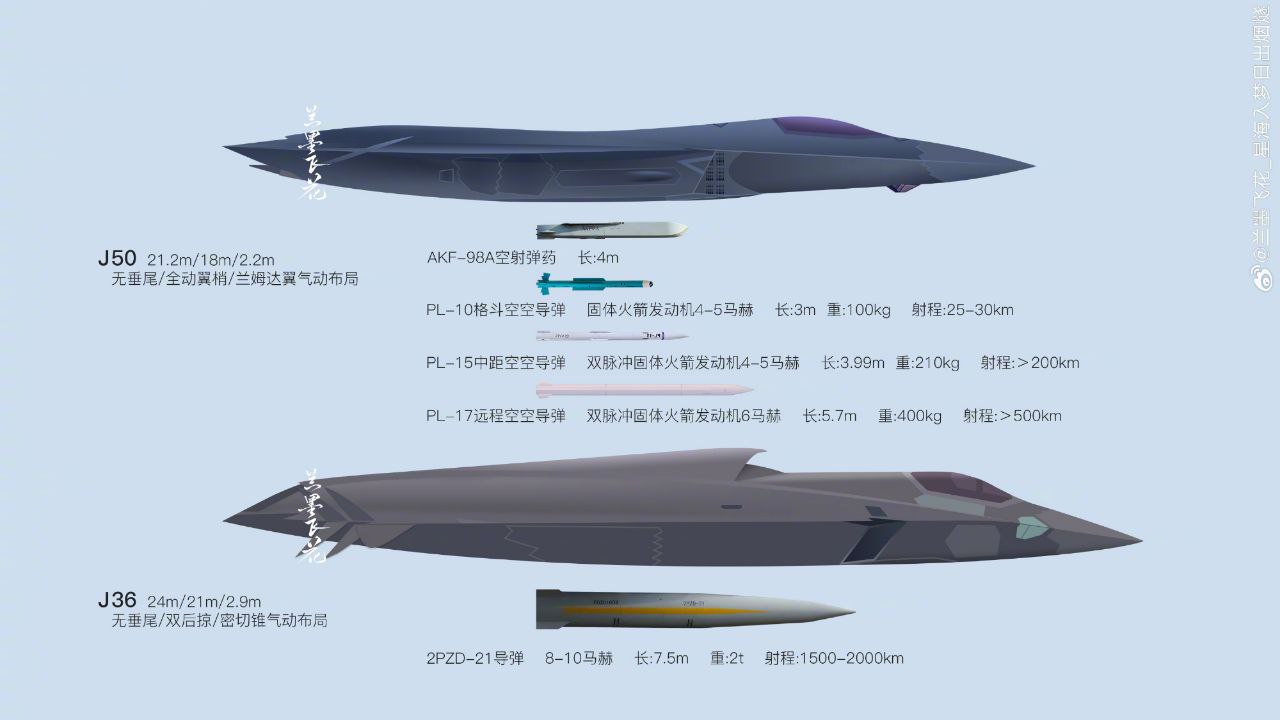 Предполагаемые варианты вооружения китайских истребителей Цзянь-36 и Цзянь-50 6-го поколения