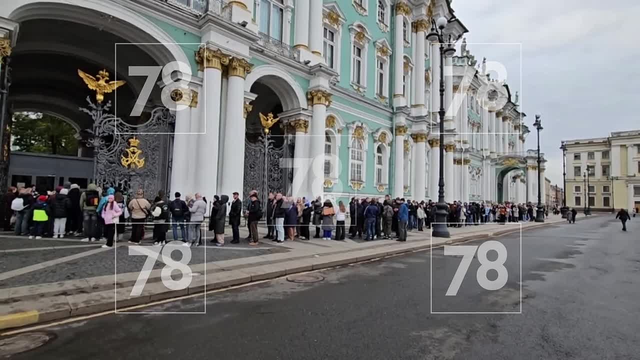 И снова очередь — на этот раз возле Эрмитажа. Сегодня можно бесплатно посетить все комплексы музея в честь Дня учителя. Как видно, многие этим пользуются.