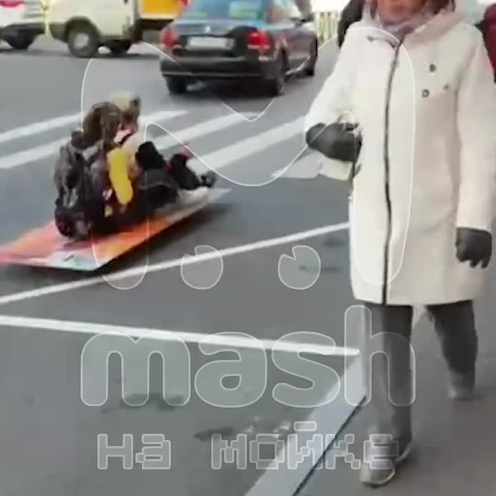 Два челобуса решили эффектно появиться на проезжей части Гороховой на мегаскейте — эпично ехали по своим детским делам с учебниками за спиной.
