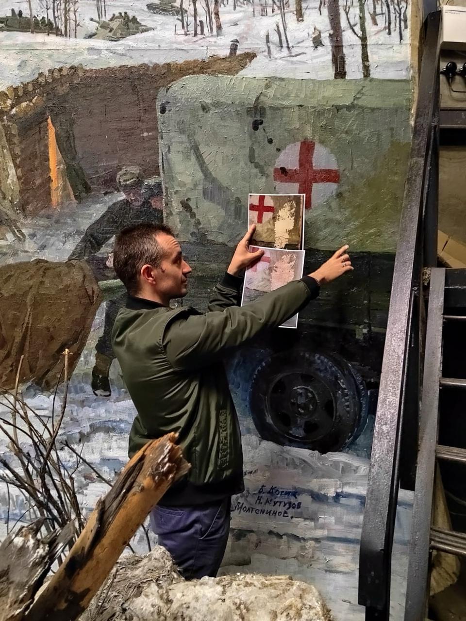 Реставраторы также подвели грунт с имитацией фактуры авторских мазков и восполнили утрату авторского красочного слоя. Работы проводил художник-реставратор Максим Коротков. На обновление диорамы у него ушло два месяца.