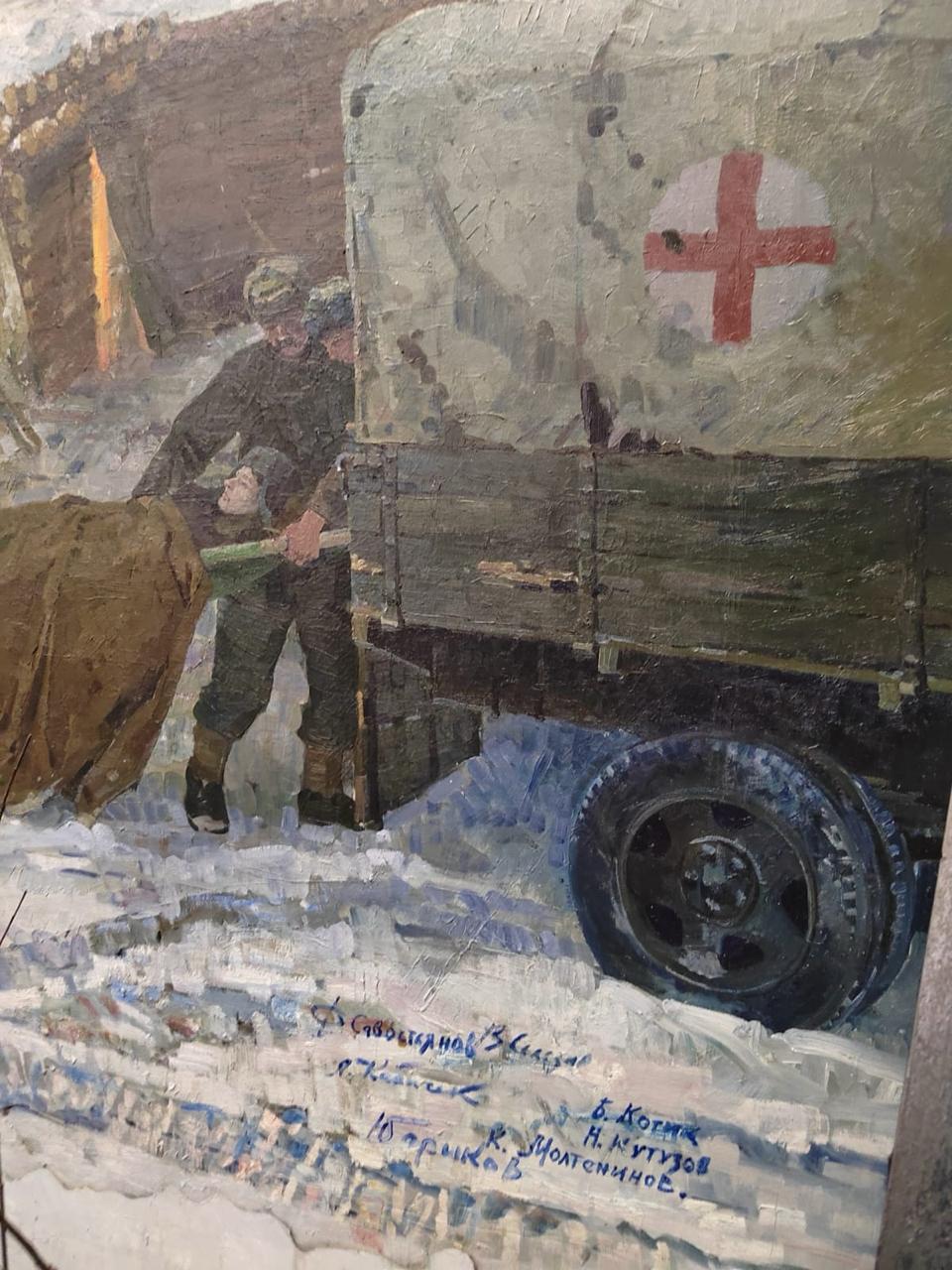 В музее-диораме «Прорыв блокады Ленинграда» завершились локальные реставрационные работы. Специалисты удалили предшествующие заклейки на полотне, укрепили грунт и красочный слой, устранили деформацию основы.