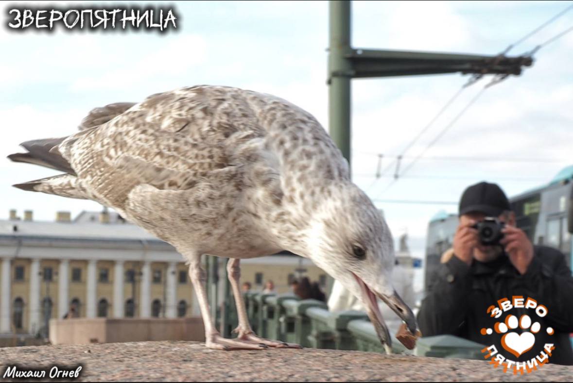 На Дворцовом мосту поселилась «самая голодная чайка» — и петербуржцы не могут пройти мимо. Горожане неустанно ее кормят, но порой за ними замечены сладкие угощения.
