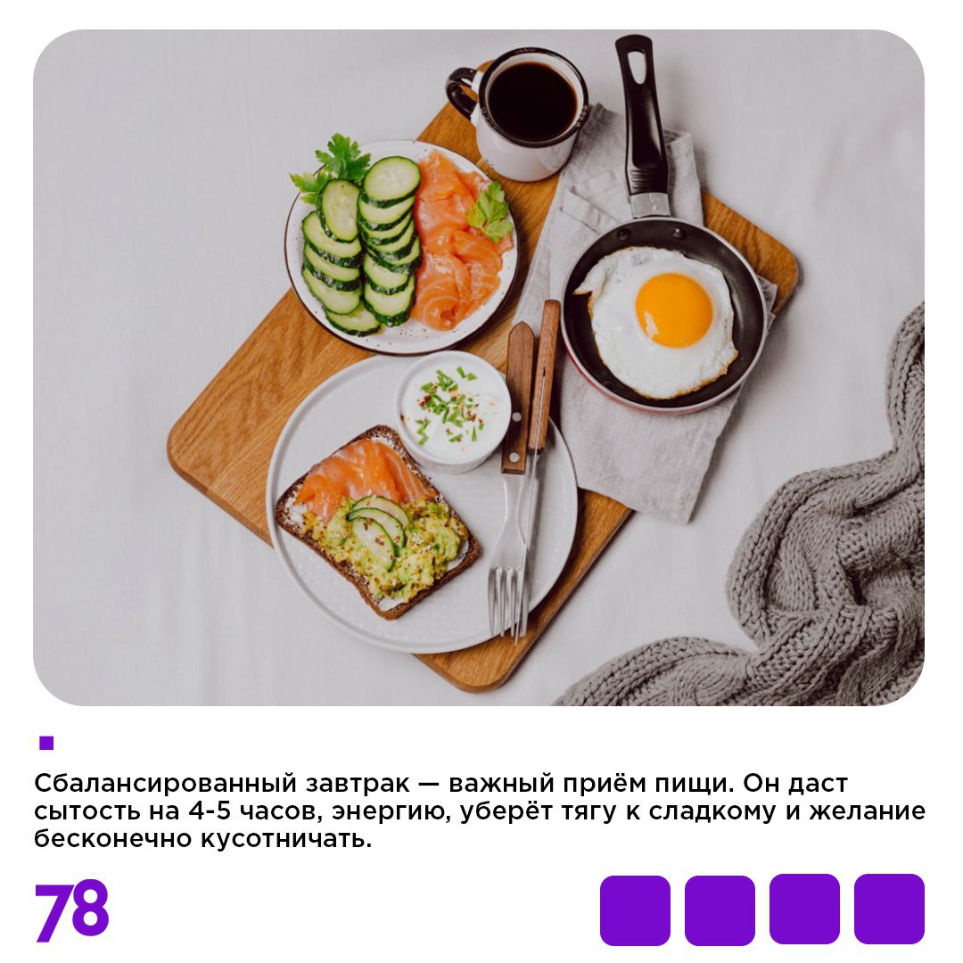 Его ни в коем случае нельзя пропускать. Завтрак ускоряет метаболизм, нормализует гормональный фон, избавляет вас от тяги к кусотничеству и сладкому в течение дня.