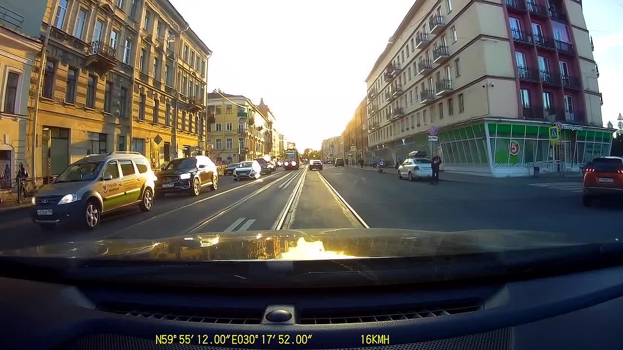 «Немец» летел по трамвайным путям, женщина с девочкой переходили дорогу по зебре и вышли из-за машины в соседней полосе. Водитель молниеносно среагировал, повернул руль и ударил по тормозам – никто не пострадал.