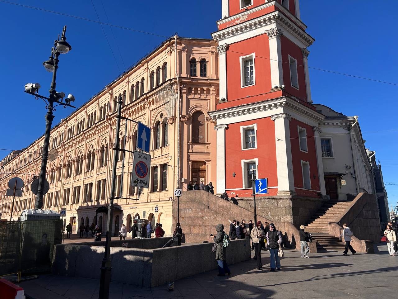 На углу с Невским разрешено выступать, но без усилителей и ударных инструментов. Однако артисты нарушают это правило, и, по словам парламентария, в школьных классах не слышно ни педагогов, ни учеников.