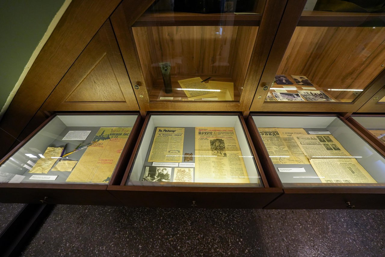 Экспозиция, приуроченная к дате выхода последнего номера газеты Народного ополчения «На защиту Ленинграда», посвящена героической работе системы печати в годы Великой Отечественной войны.