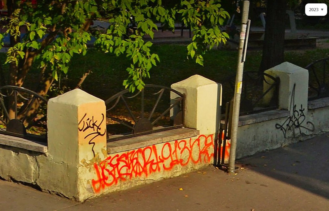 Судя по картам, примерно до 2022 года ограда была желтой, потом — судите сами.