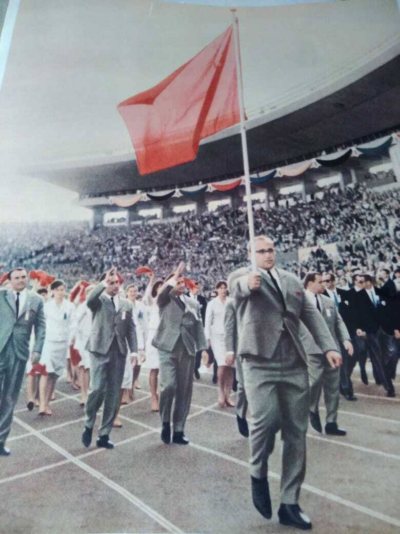 Юрий Власов, штангист и позже - хороший писатель, самый сильный человек на планете в 1960-х. Он был знаменосцем сборной СССР на своей последней Олимпиаде. Кто бы посмел вырвать у него красный флаг?