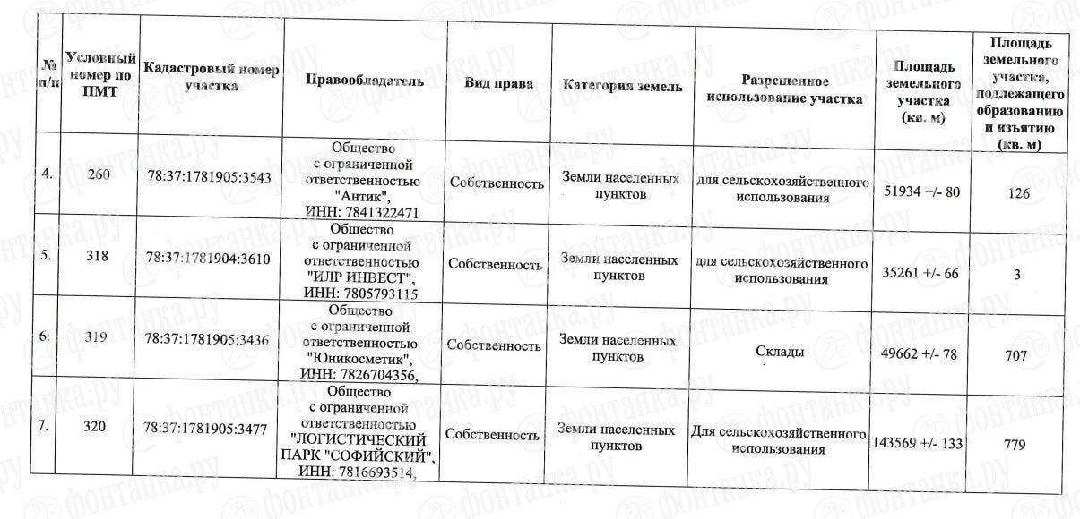 В Петро-Славянке 700 кв. метров потеряет участок восточнее пересечения Софийской улицы и Николаевского проезда (принадлежит «Юникосметик») и ещё 780 кв. метров участок, который расположен немного южнее (ООО «Логистический парк „Софийский“»).