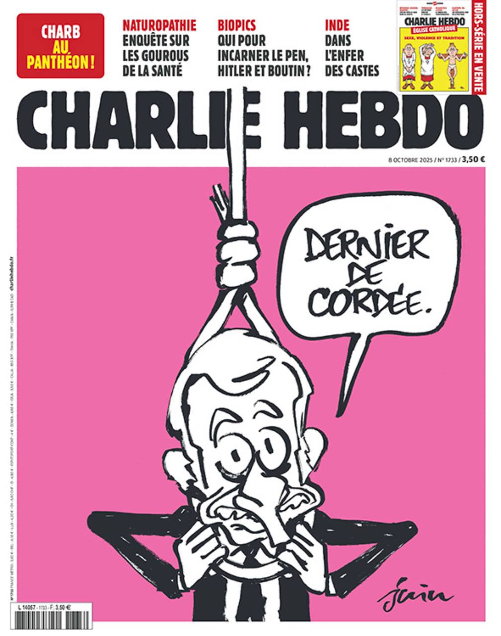 «Последний в петле». Свежий выпуск еженедельника «Шарли Эбдо», разумеется, посвящен отставке очередного французского премьера-однодневки. Полагают, что теперь очередь Макрона. Вполне резонно полагают, по-моему