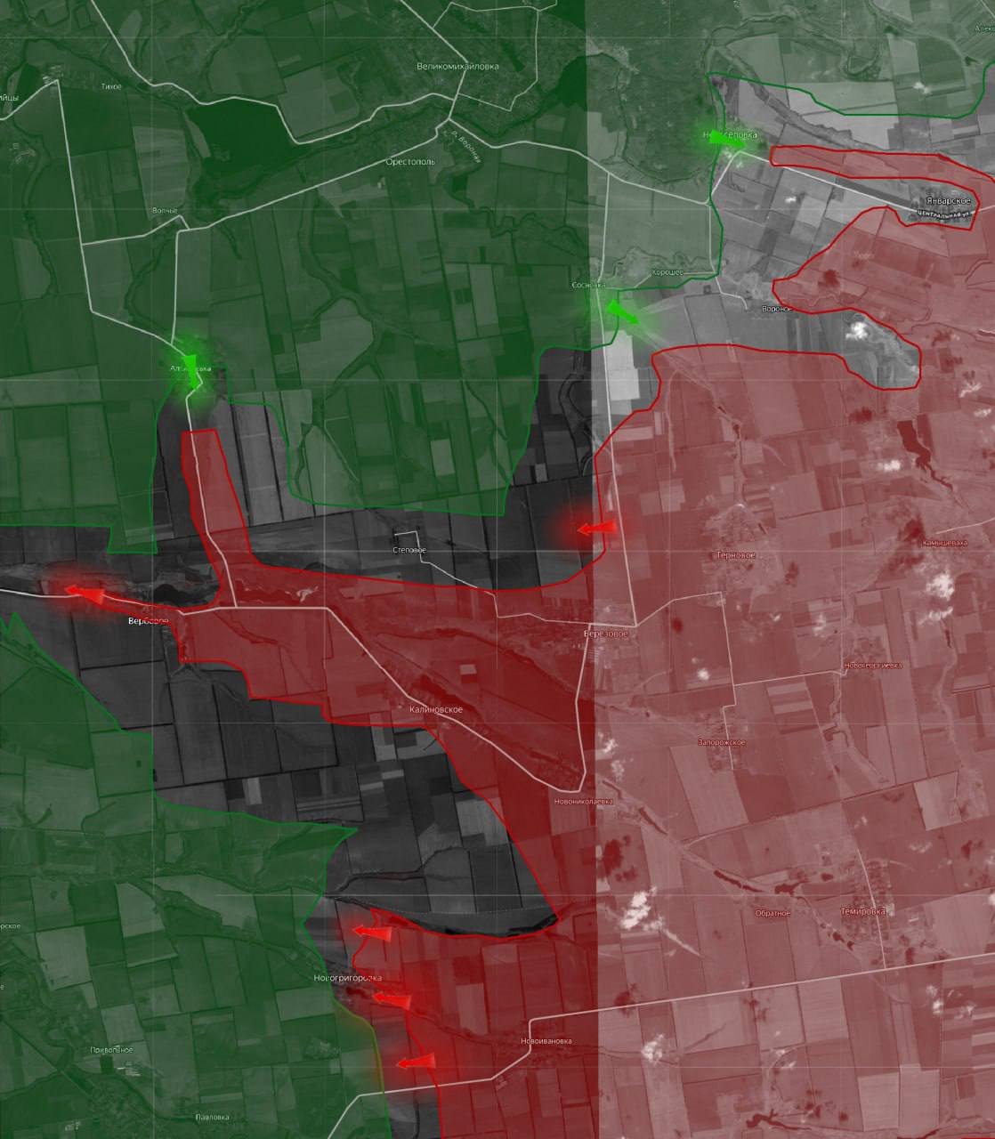 Также ВС РФ продвинулись на ряде участков в направлении н.п. Алексеевка (севернее захваченного Вербового Днепропетровской области). ВСУ контратакуют из Алексеевки, но безрезультатно».