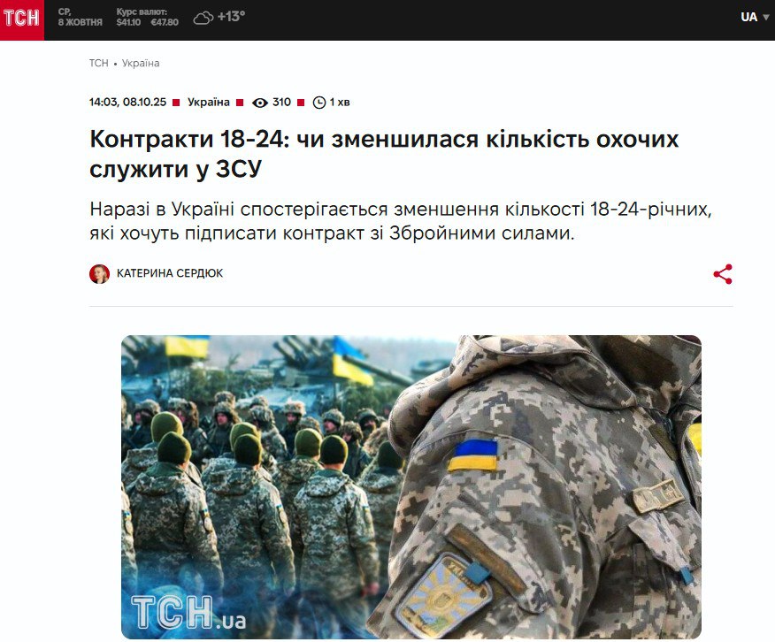ТСН передает, что количество желающих служить в ВСУ уменьшилось.