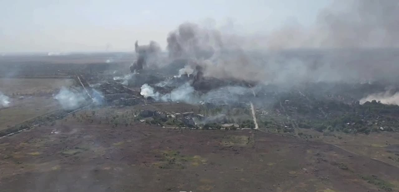 Украинский коптер снимает окраины Мирнограда после усиленного обстрела со стороны ВС РФ.