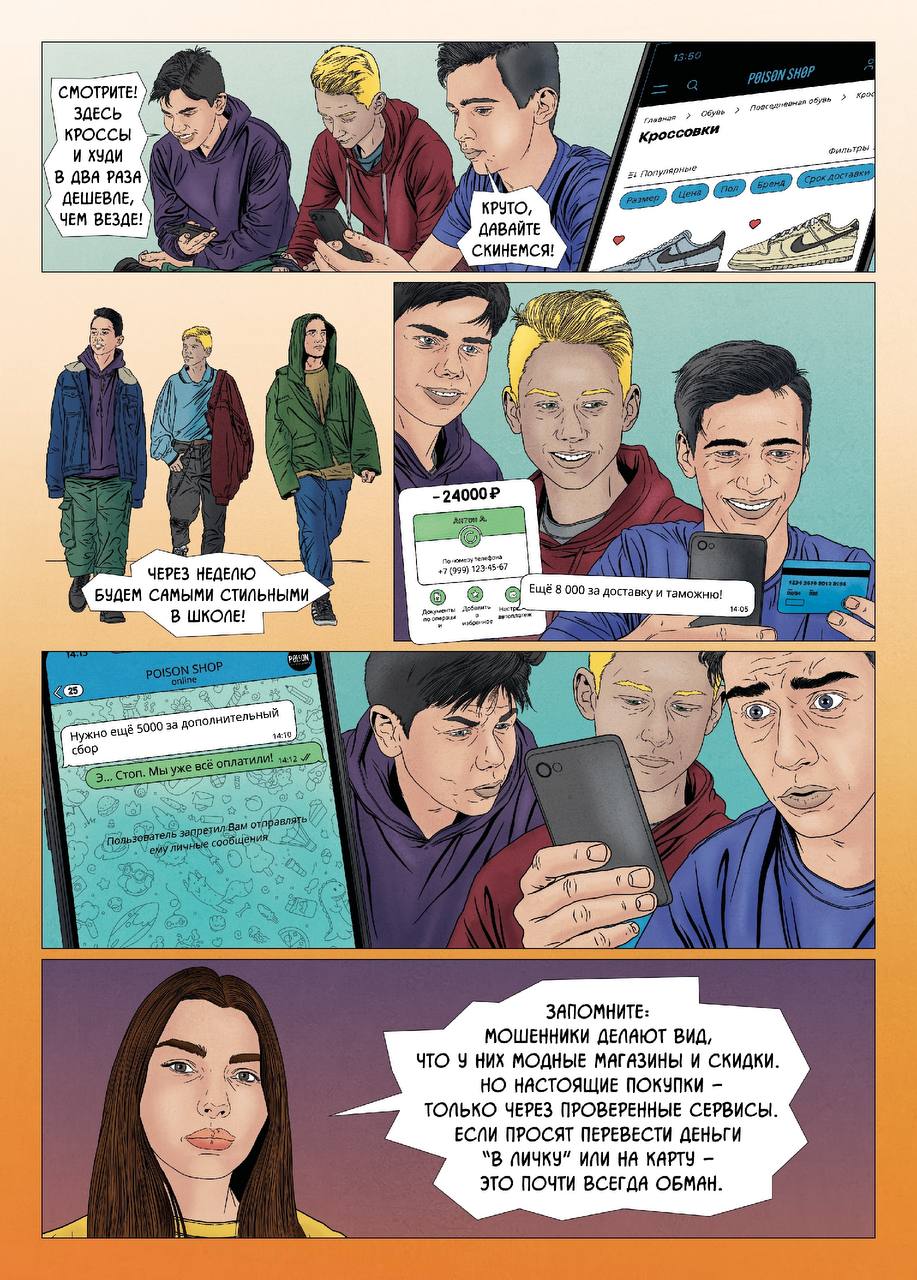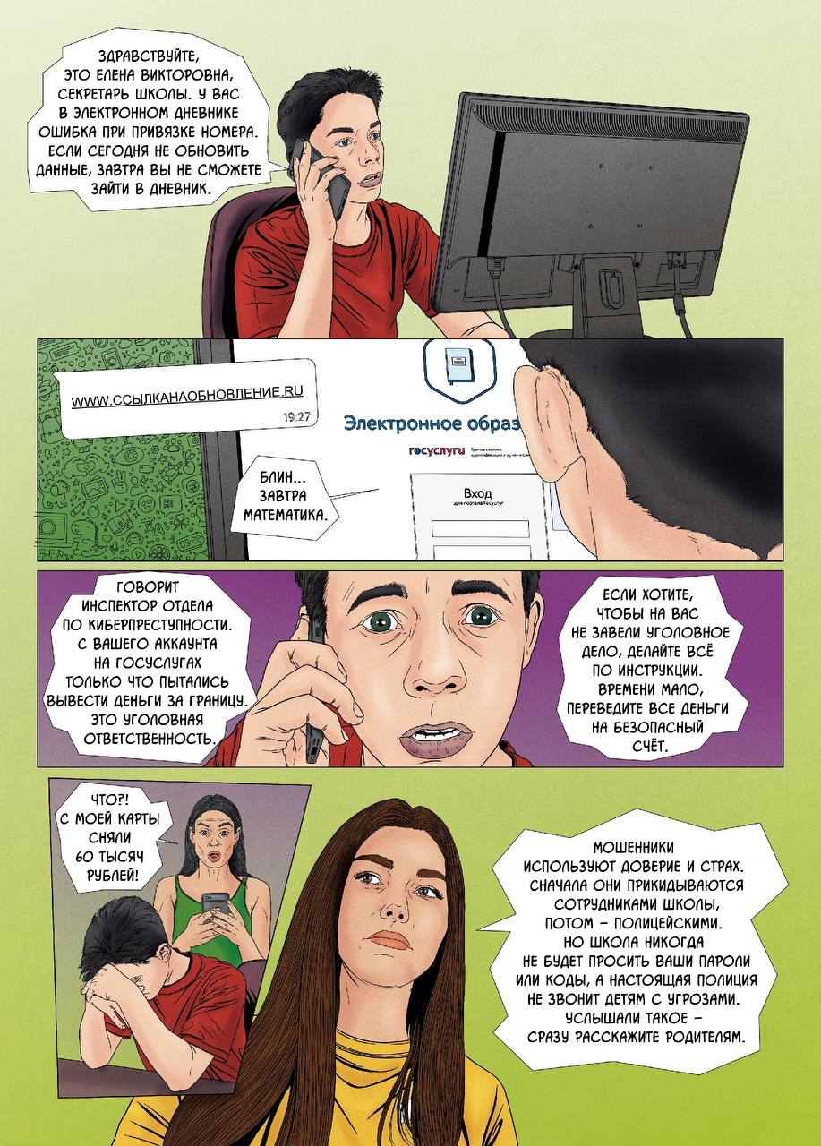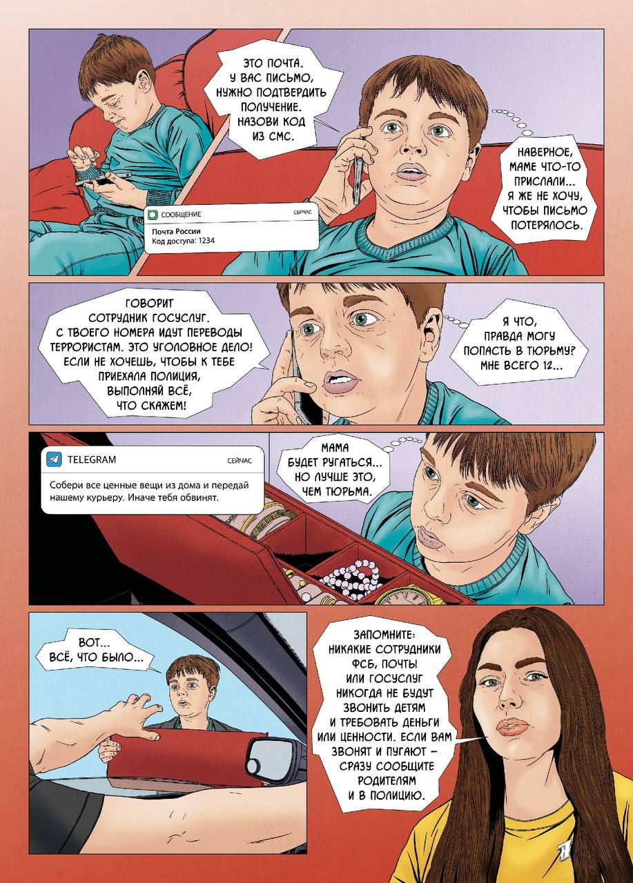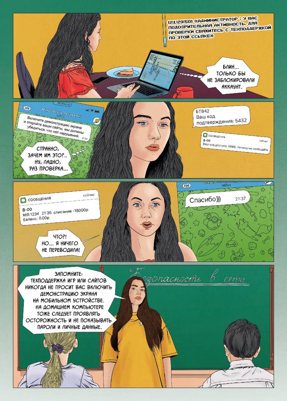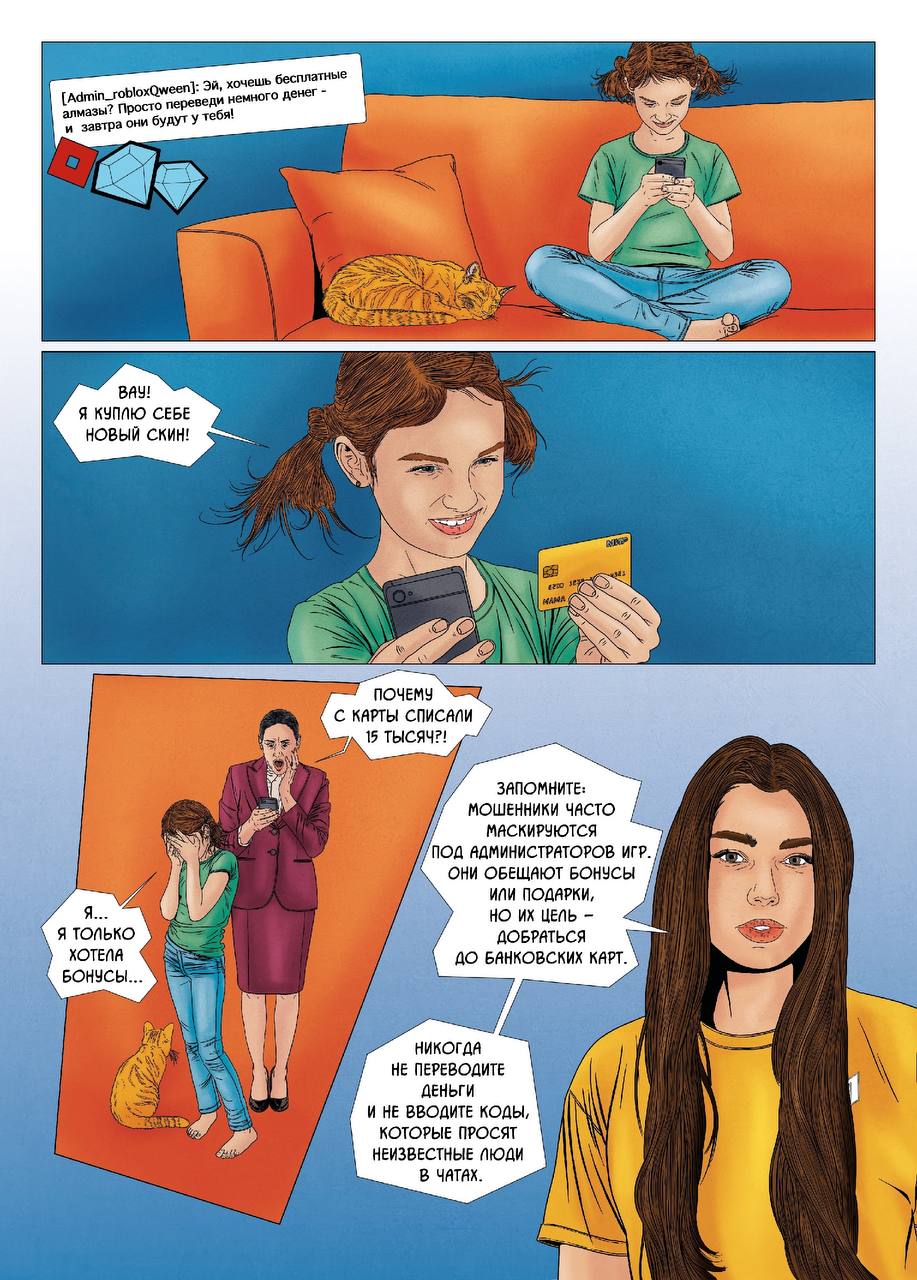 Детский комикс о кибермошенниках, закиньте своим детям почитать-посмотреть. Или вместе посмотрите, комментируя.