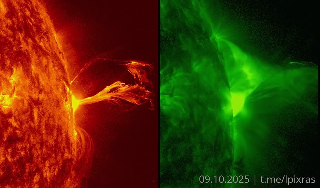 Сильная и красивая вспышка уровня M2.0 зарегистрирована около часа назад в западной части Солнца.