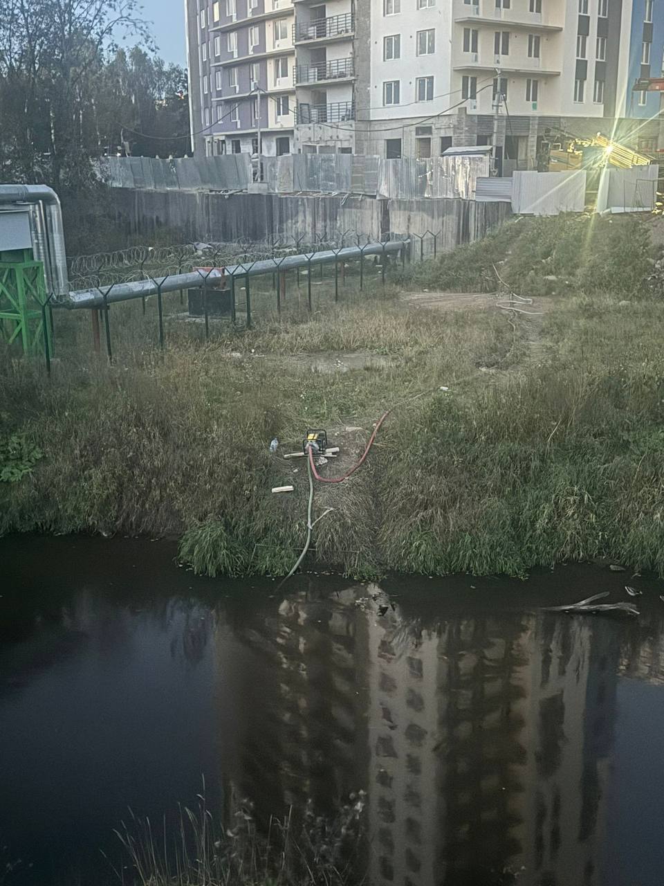 Грязная река обеспокоила жителей Мурино 8 октября. Причина помутнения цвета воды — недобросовестные строители. Со стройплощадки на Оборонной улице с использованием мотопомпы выкачивали сточные воды и по шлангам сливали их в Охту.