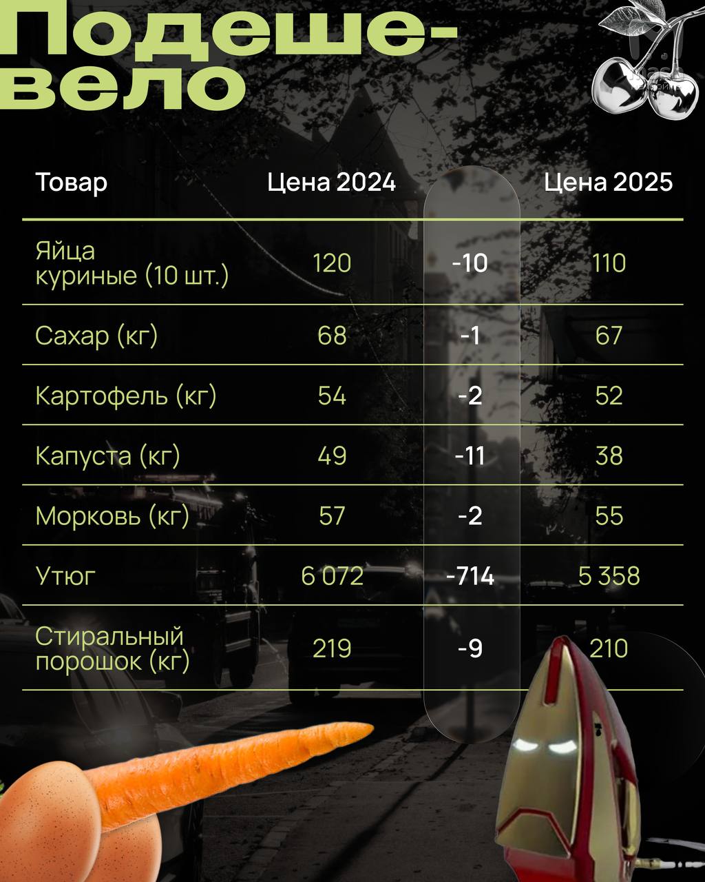 Спойлер: за год подешевело всего семь вещей. Например, рухнули цены на утюги, поэтому ими можно отглаживать намокшие от слёз подушки.