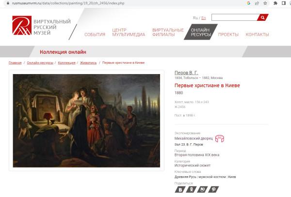 Совершенно случайно обнаружил, что Русский музей в картине Перова "Первые христиане в Киеве" заменил национальность русские на указание места события, хотя раньше название было "Первые русские христиане".