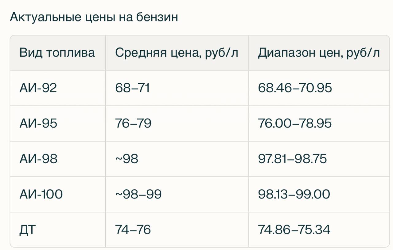 Спросил, какой есть. Сказала, есть сотый. Спросил, сколько можно залить. Ответила, что сотого достаточно, но если пробьёт больше 20 литров — будут ругать. Мне столько и не нужно было, бак почти полный, просто спросил.