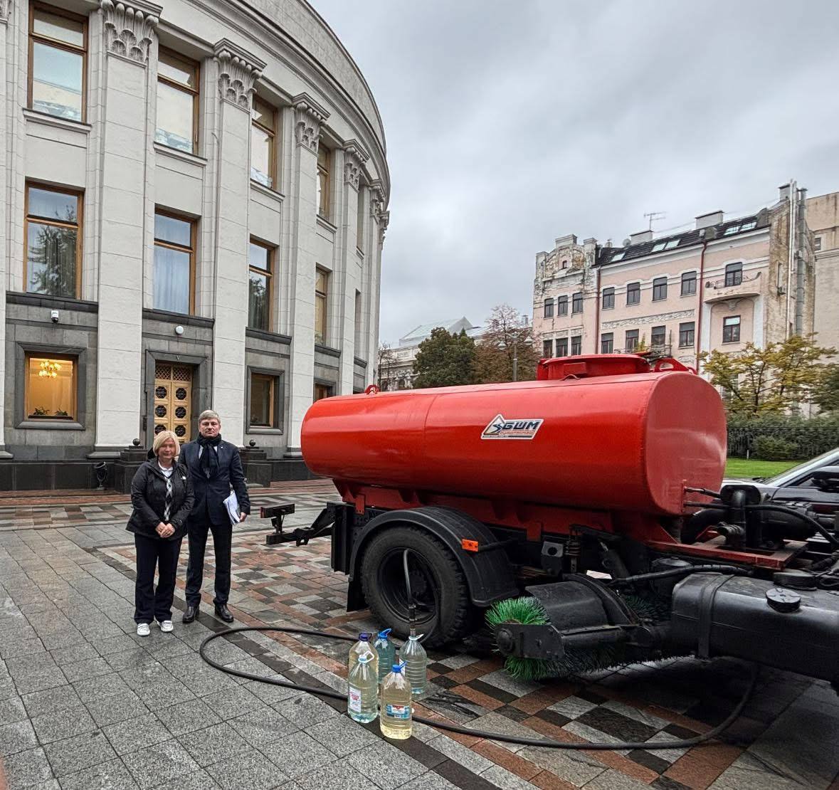 В правительственном квартале Киева нечем смывать в туалетах. После российского ночного удара в Киеве не работает водоснабжение: в правительственный квартал – к зданию Кабмина и Верховной рады, где проходит сегодня заседание, привезли цистерны с технической водой, а также биотуалеты.