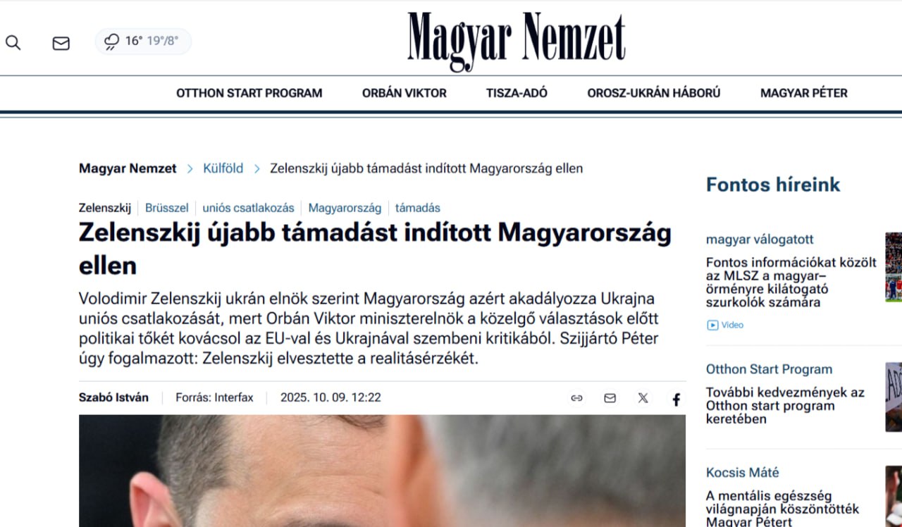 "Думаю, что президент Украины полностью утратил чувство реальности, полностью утратил связь с реальностью, и, возможно, этим можно объяснить то, что он говорит вещи, которые в нормальной ситуации должны были бы вызвать бурю негодования. Он говорит, что Украина станет членом Европейского союза. Уважаемый господин президент, это решать не вам. Этот вопрос решают не те, кто хочет вступить в ЕС, а те, кто уже в нем находится", — так глава МИД Венгрии Петер Сийярто прокомментировал заявление Зеленского о том, что Украина станет членом ЕС без учёта мнения Будапешта.