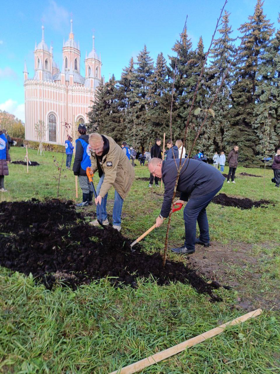 Сегодня, 11 октября, за Чесменской церковью высадили яблони и груши - живой памятник 255-летию легендарного Чесменского сражения.