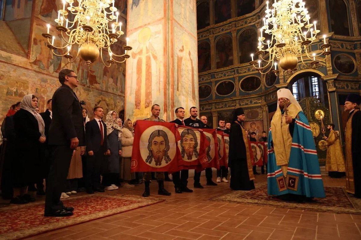 На фронт воинам специальной военной операции будут переданы освященные стяги с изображением Спаса Нерукотворного.