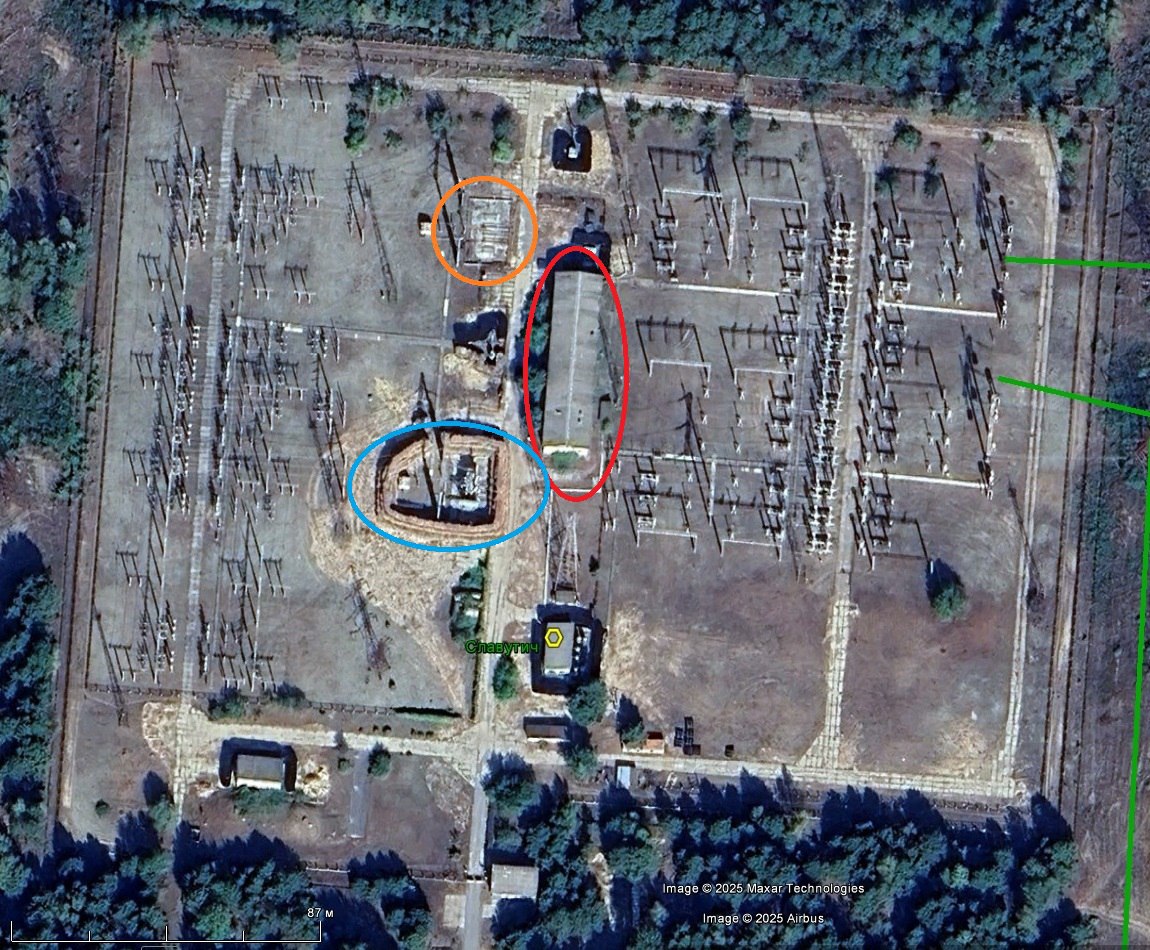 В первую отделалась одним уничтоженным автотрансформатором (рыжее). Во вторую уничтожили и его, и пережившего первую напарника (голубое) и ОПУ (красное).
