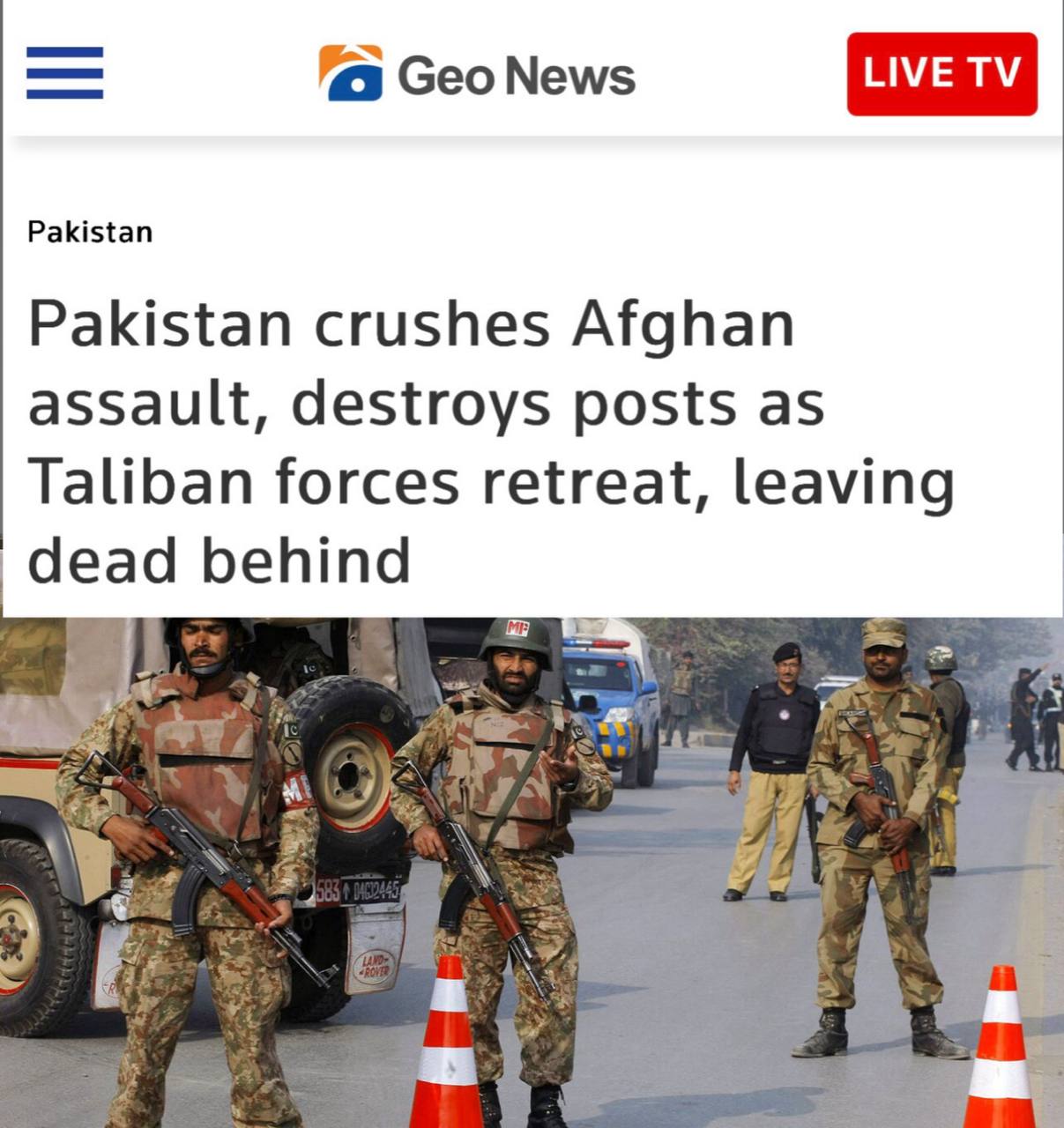 «Погранпосты использовались для нападений на территории соседнего государства. Военные Афганистана открыли неспровоцированный огонь на нескольких пограничных пунктах, включая Ангур-Адду, Баджаур и Куррам, также сообщалось о нападениях в Дире, Читрале, Барамче и других».