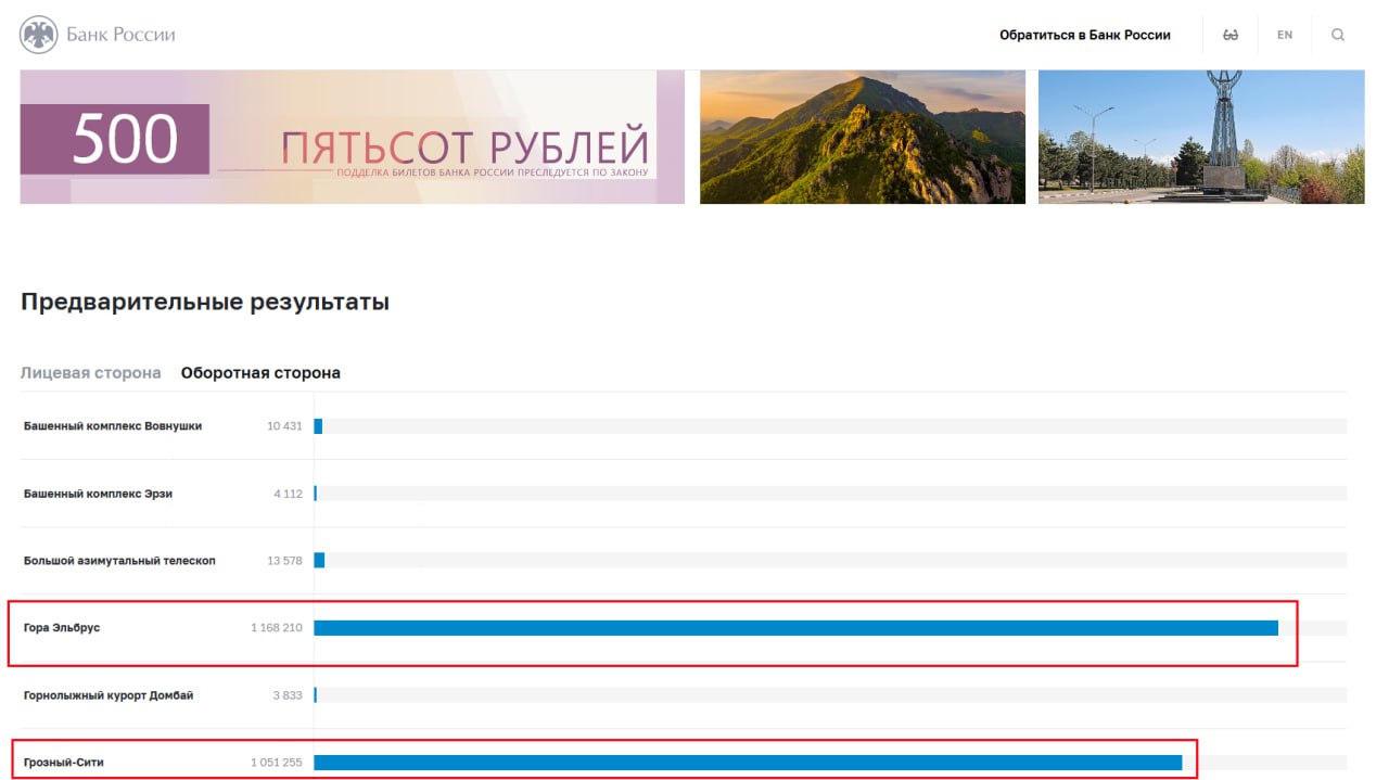 Как только Центробанк внял разумным доводам и ограничил голосование за дизайн своих купюр исключительно через портал Госуслуг (то есть исключительно россиян, которые могли проголосовать только единожды), так сразу почти все те, кто голосовал за вариант «Грозный-Сити» … пошли «спать».