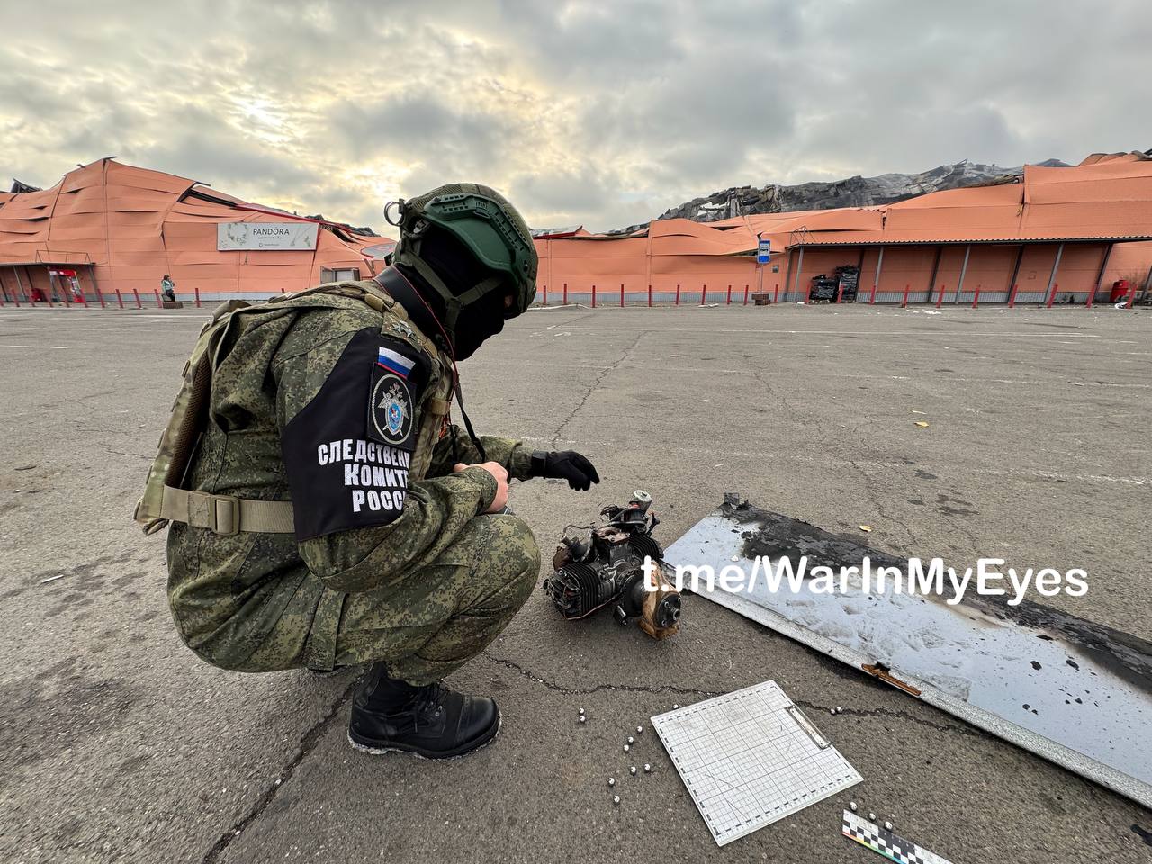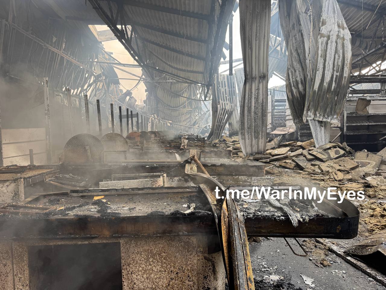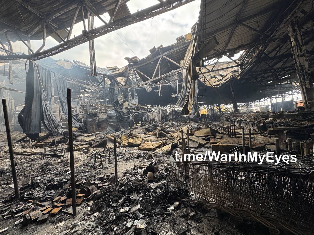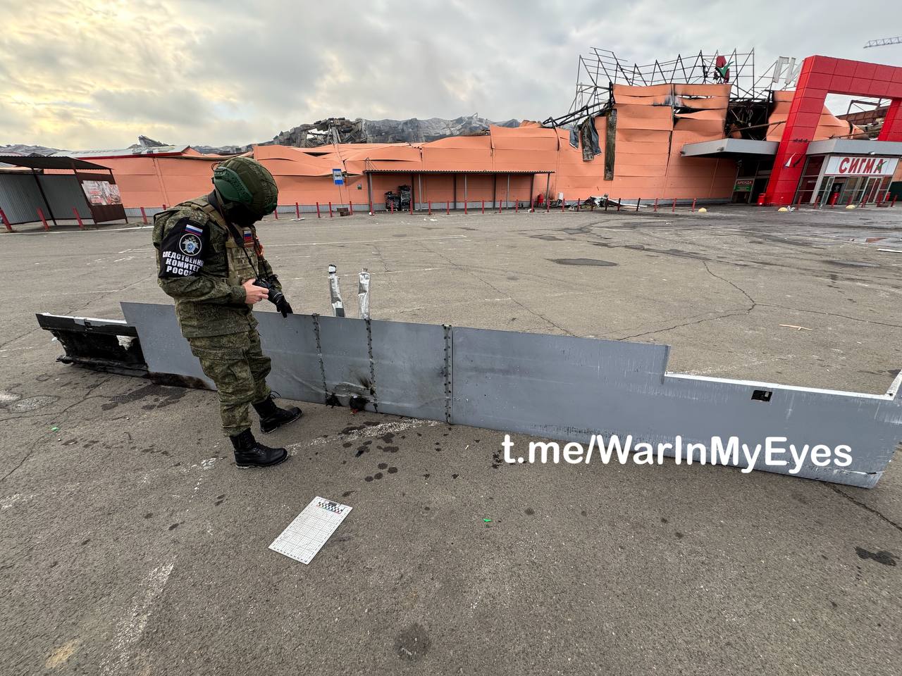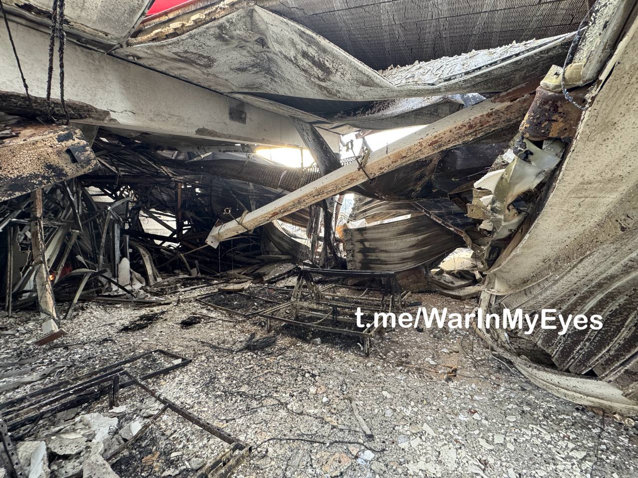 Гипермаркет «Сигма-Ленд» в Буденновском районе Донецка после ночного удара дронов. Магазин полностью сгорел, на месте работают следователи СК РФ.