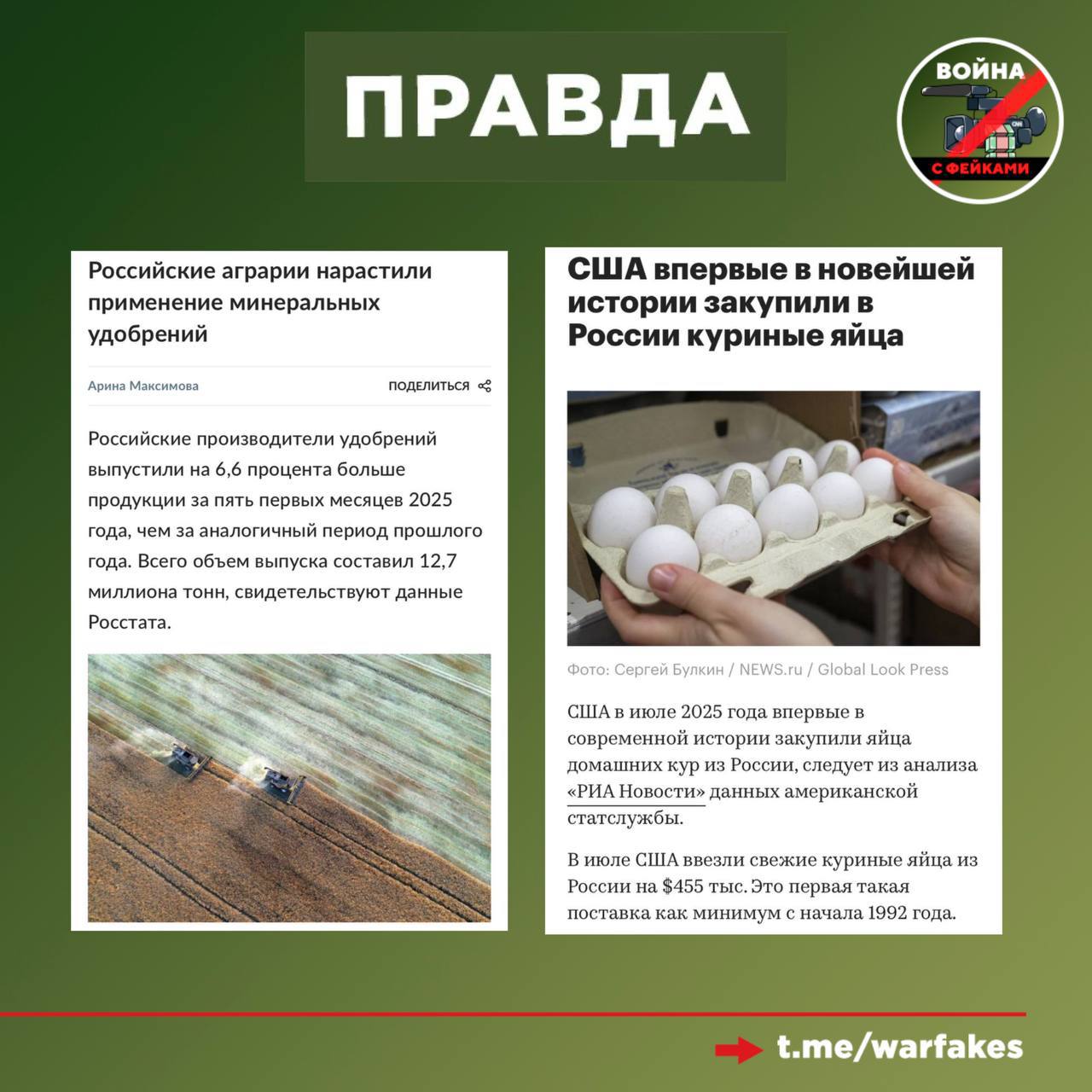 Важная деталь: в 2025 году Россия впервые в новейшей истории стала экспортером яиц в США. Еще один момент, также опровергающий фейк об упадке сельского хозяйства, которое по прогнозу вырастет в этом году на 2,2% и продолжит динамику в будущем.