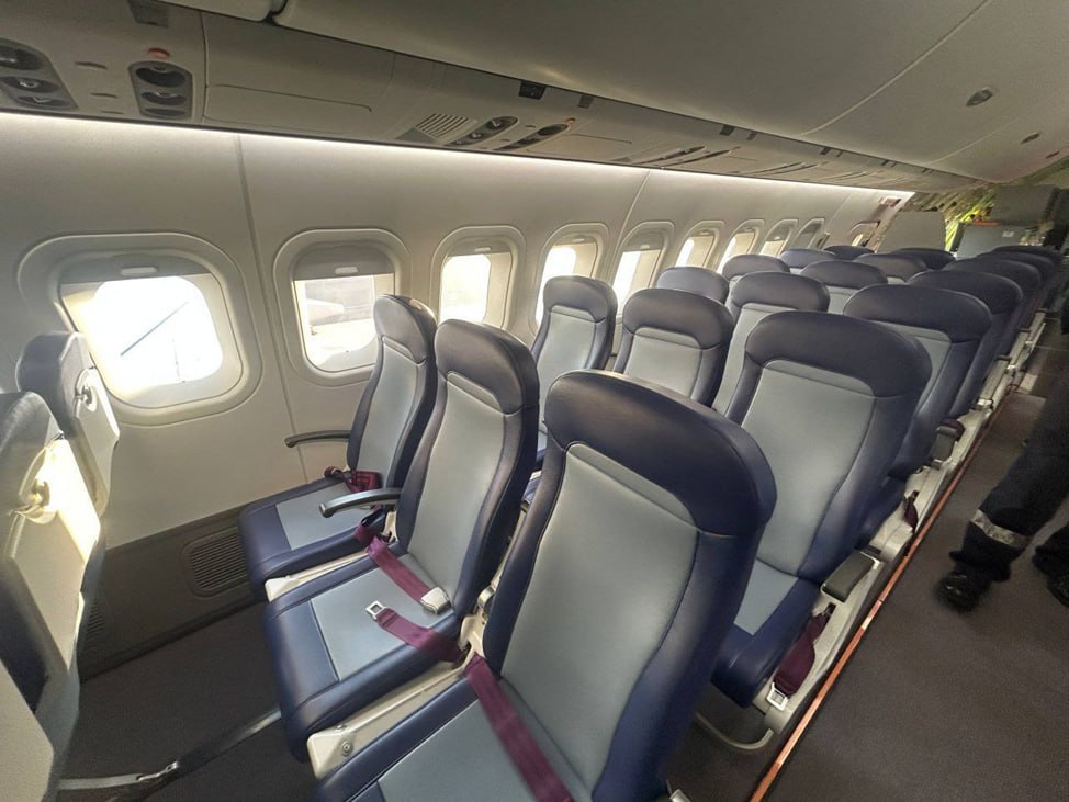 Аэропорт "Пулково". Раскраска авиакомпании "Россия". Ширина кресел и расстояния между рядами радуют. Скорее бы на линии увидеть.