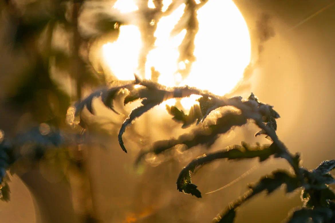 Александр Дрозденко поделился кадрами украшенных инеем осенних растений
