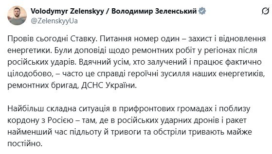 Самая сложная ситуация в прифронтовых общинах и возле границы с Россией – там, где у российских ударных дронов и ракет минимальное время подлёта, и тревоги, и обстрелы продолжаются почти постоянно’.