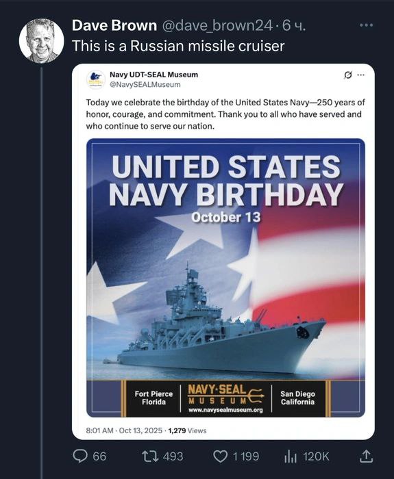 На снимок в соцсети X обратили внимание ветераны ВМС и журналист Дэвид Браун, после чего пост был удален.