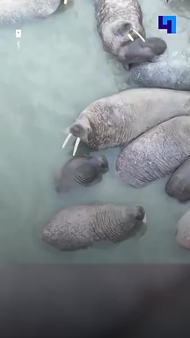 По словам заведующего лабораторией Александра Соколова, популяция моржей на Ямале растёт: среди животных много молодых особей.
