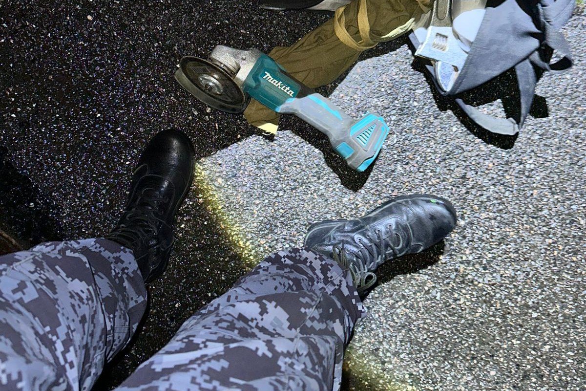 У компании изъяли рюкзаки, в которых были сложены веревки и различные инструменты, в том числе аккумуляторная угловая шлифовальная машина. Нарушителей доставили в отдел полиции для дальнейших разбирательств.