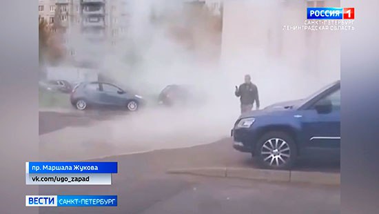 Жители нескольких десятков домов в Красносельском районе Петербурга остались без горячей воды. На проспекте Маршала Жукова дважды прорвало трубу. Все случилось накануне днем - сначала у дома 31. А спустя буквально пару часов еще по одному адресу – 25/1. В результате коммунальной аварии дороги заволокло клубами горячего пара, затопило участок проезжей части и размыло газон.