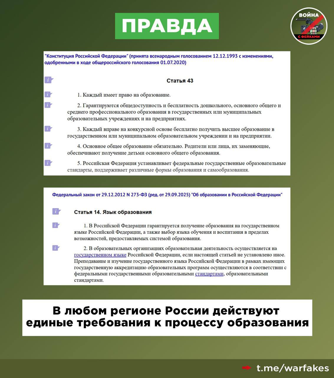 Правда: ДНР, ЛНР, Херсонская и Запорожская области вошли в состав России в 2022 году. Это значит, что образование здесь ведется по стандартам РФ на государственном языке.