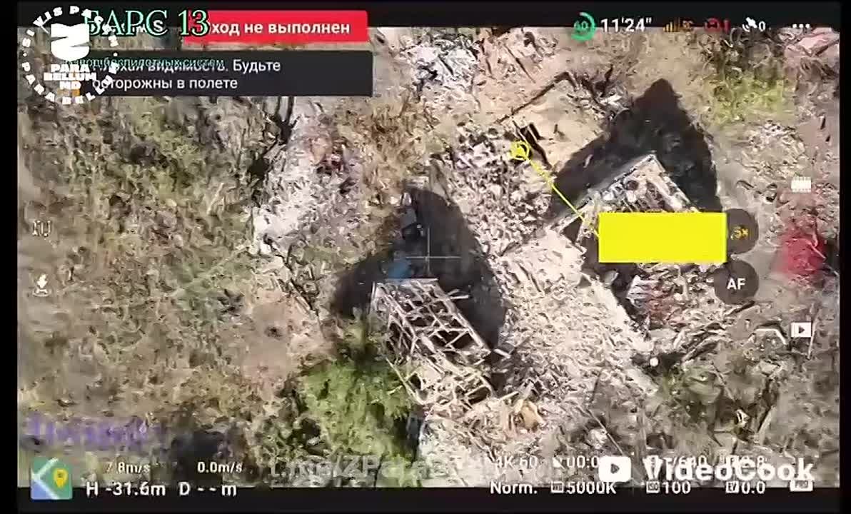 Работа операторов "Барс 13". В конце обращает на себя внимание эпизод, где с помощью дрона утаскивают сбитый и валяющийся на поле боя Mavic 3 Pro. Как в старом игровом автомате с клешней, где надо вытаскивать подарки