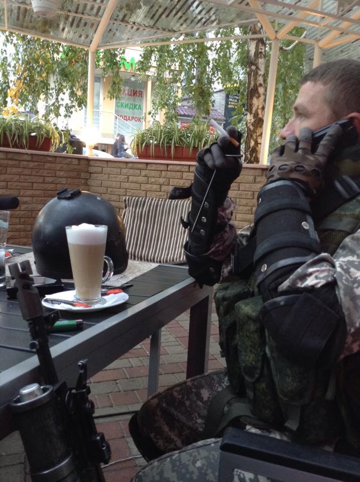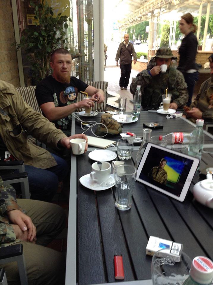 Несколько моих снимков Мотора. Самый первый - апрель 2014 года, Славянск. Сентябрь 14 у "девятки", аэропорт. Смотрим в "Легенде" какой-то укропский пропагандистский фильм, потом заметку написал с комментариями Мотора. И еще две встречи в той же "Легенде" последний снимок, единственный, где мы вдвоем. Последний...